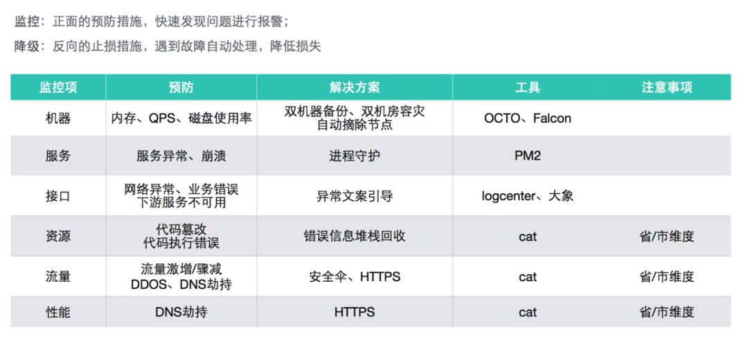 第三,解决这些关键问题的处理方式,端到端监控与降级处理方案。