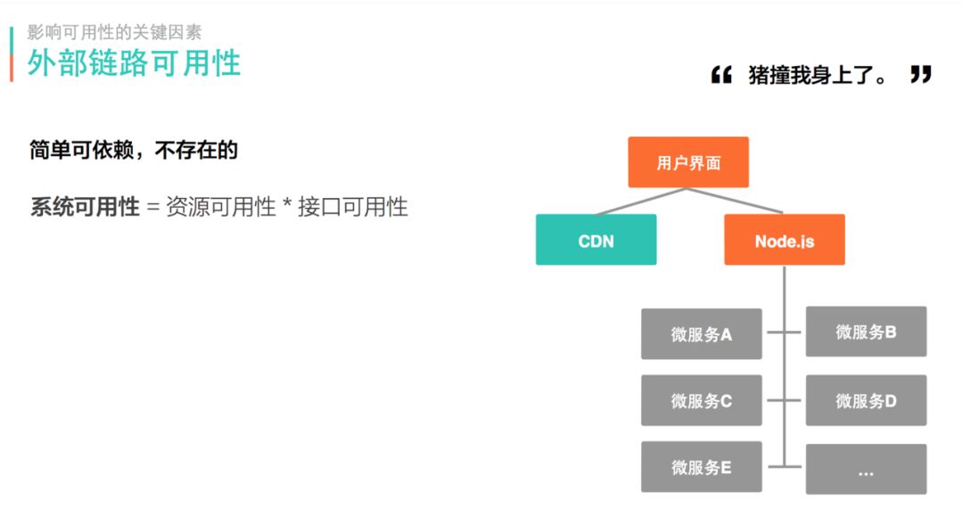 外部依赖服务故障:这是比较典型的问题,对于前端来说,最常见的就是接口服务或者依赖的基础服务组件出现故障,这些都会导致前端业务的不可用。
