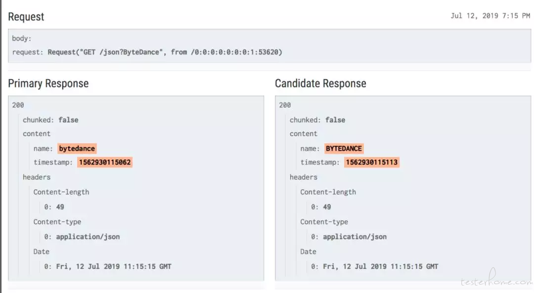 比如某个接口返回的数据中的”name”字段获取由user数据库表改为mobile_user数据库表,那么从接口角度来讲,通过对比这个接口在新老版本代码的返回结果,就可以知道其字段的基本正确性与差异性。