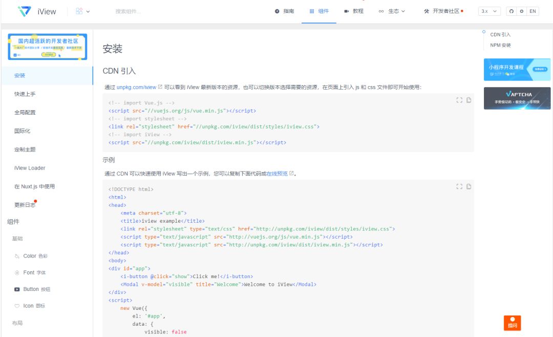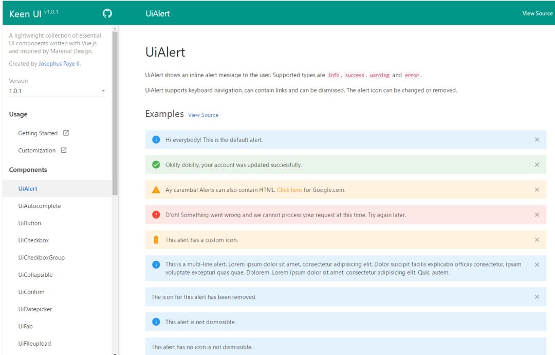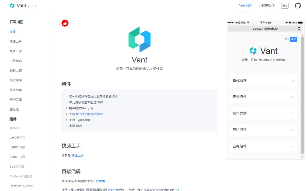优点:中文文档,ui种类比较全,ui设计简洁清晰
