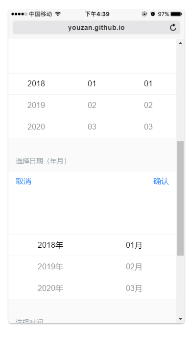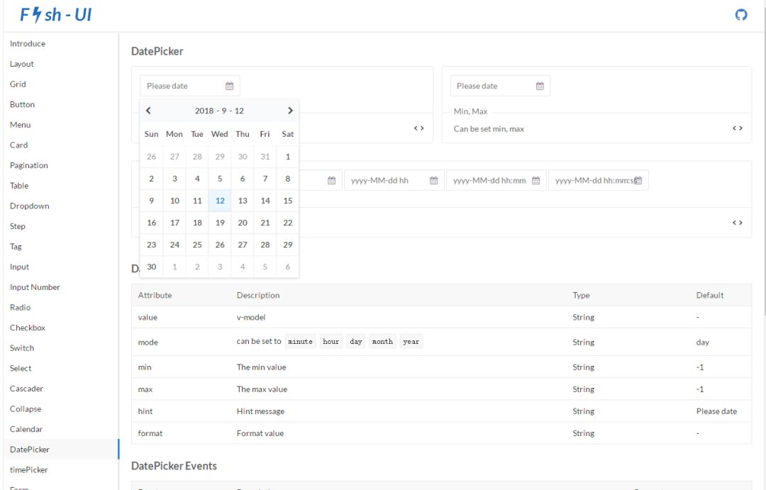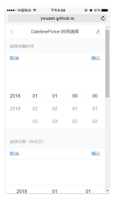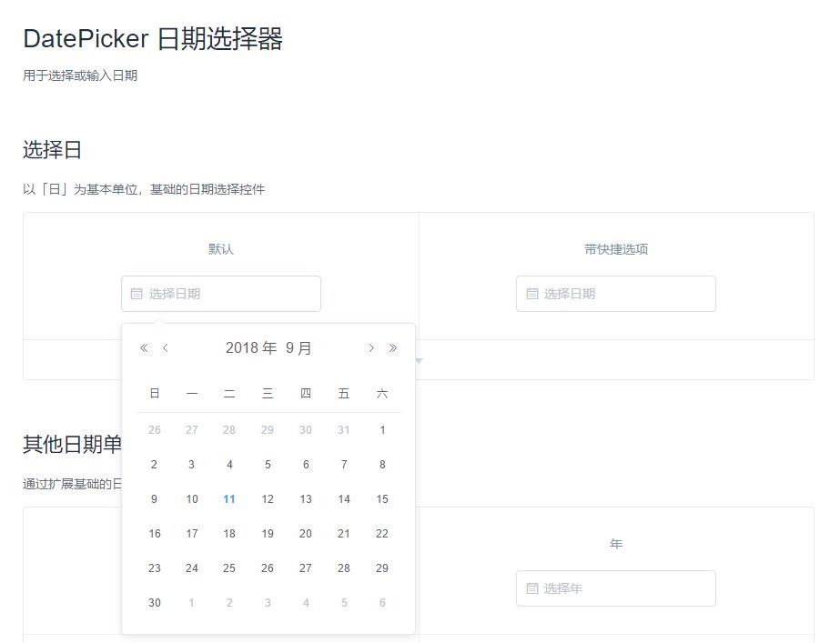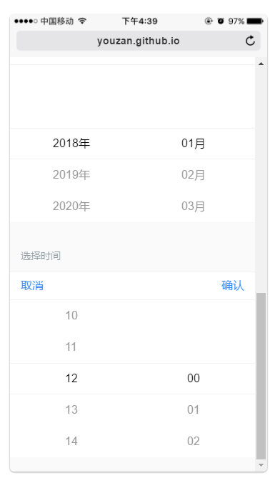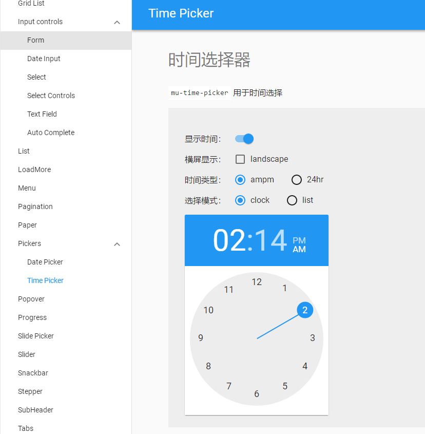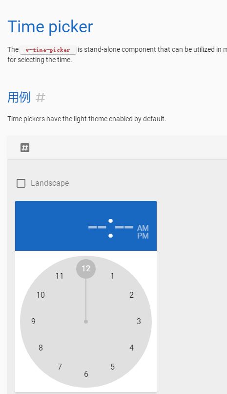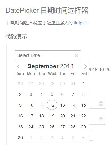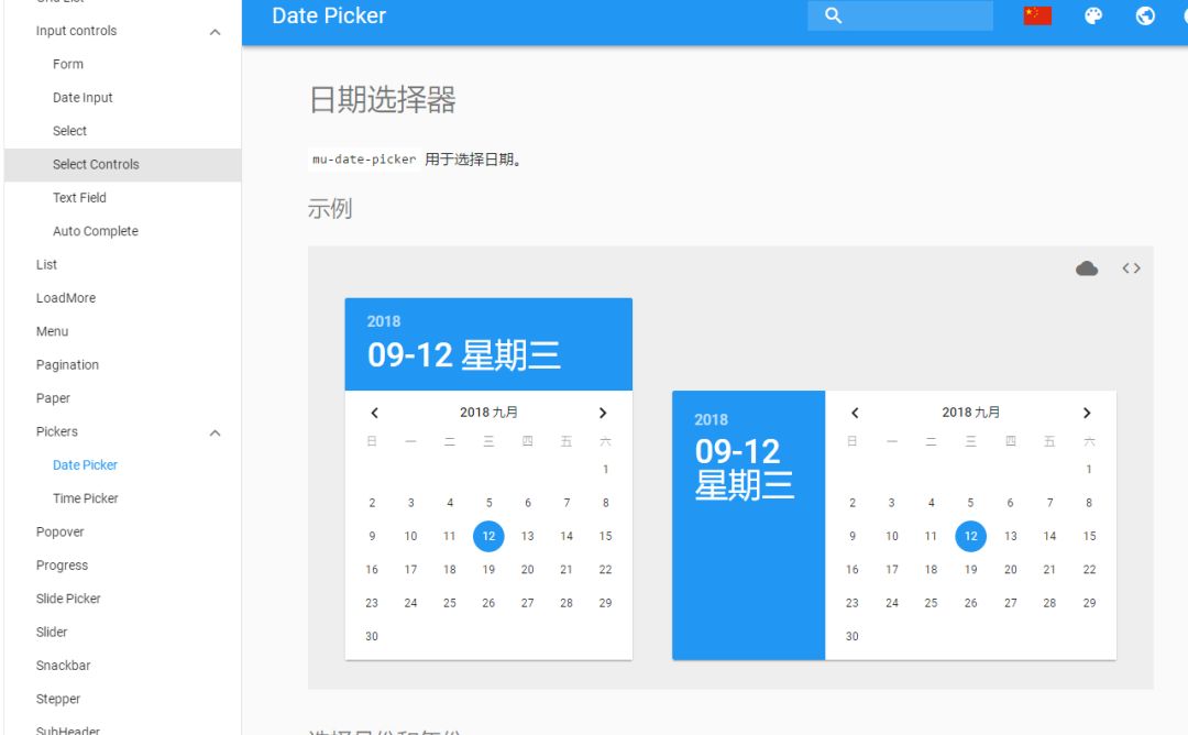 优点:时间选择器是时钟样式,比较有特色。中文文档