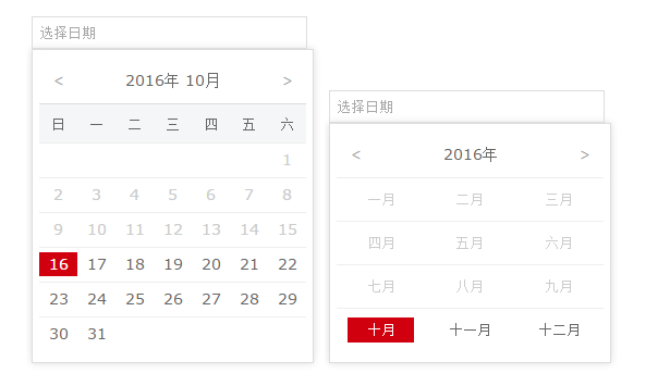月份选择排版蛮特别,极少数用这么正红配色的日期选择器