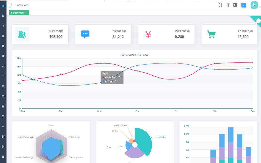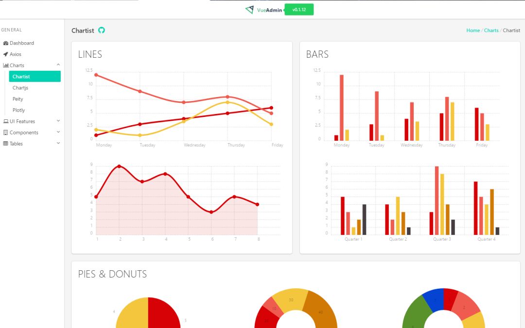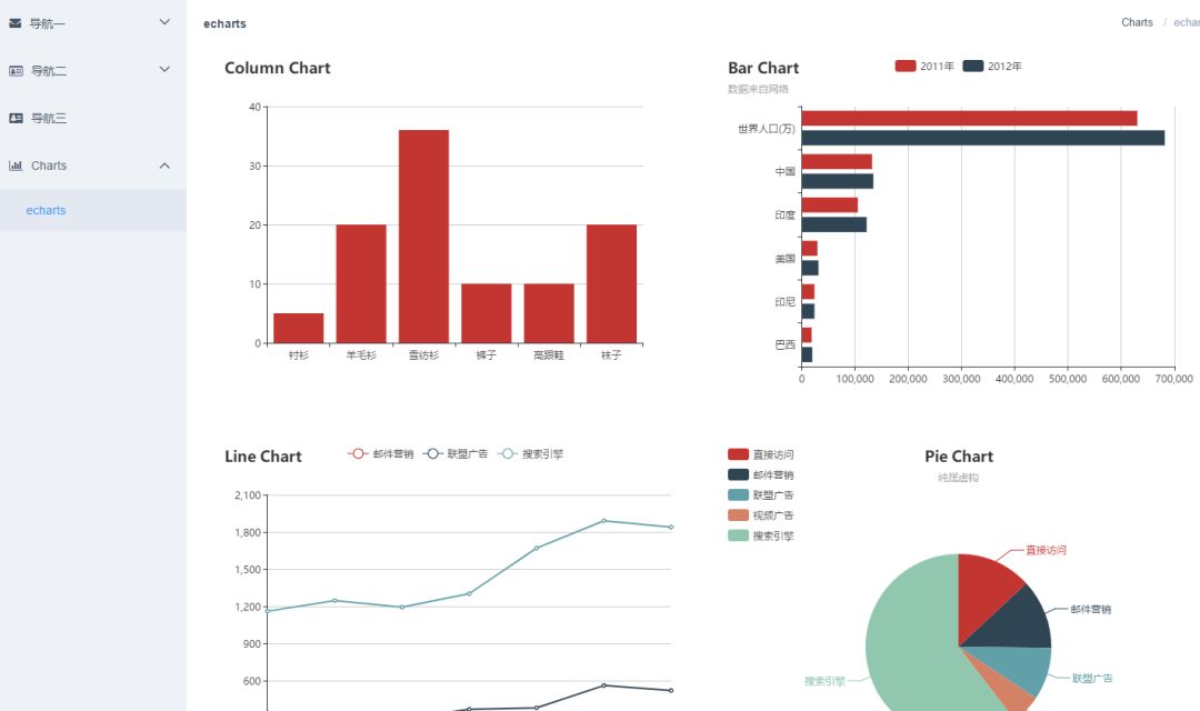 可视化图表的vue版本,主要饼形图,条形图,雷达图等都有