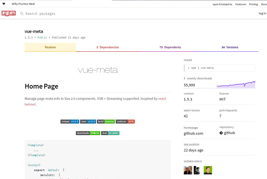管理Vue 2.0组件中的页面元信息,支持SSR +流媒体。
