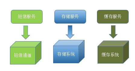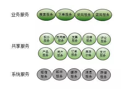 最底下是基础系统的服务,这些服务实现对底层系统功能的封装,供之上各个业务使用,如短信/消息/存储等服务,上层服务无需关注底层资源的物理位置和内部细节。