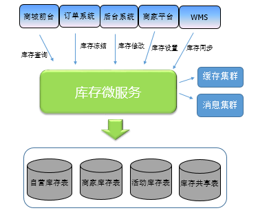 商品库存是电商的核心数据,有数十个业务系统调用,大促时每天调用数十亿次,往往在数百台虚拟机/容器上部署,提供水平扩展,具体架构如下:
