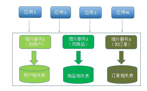 面向特定主题/概念/要素构建细分服务,最终服务于该主题相关的所有业务场景,比如围绕用户构建用户服务,对外供所有需要用户信息的业务系统访问,内部只访问用户相关的几张表,结构如下图所示:
