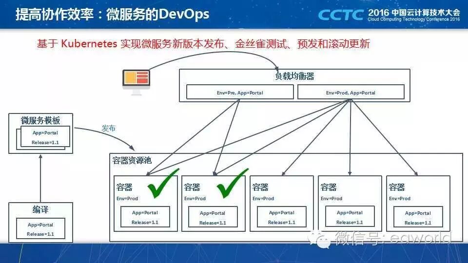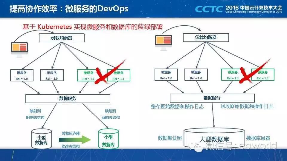 同时,我们的 DevOps 平台准备基于Kubernetes 实现微服务新版本发布、金丝雀测试、预发和滚动更新,这也是一个基于 OpenStack 比较复杂的工作,用 Kubernetes 的标签概念就比较简单。目前正在考虑通过数据服务解决服务发布的数据库蓝绿部署问题,帮助微服务做好发布、回滚、灰度发布。