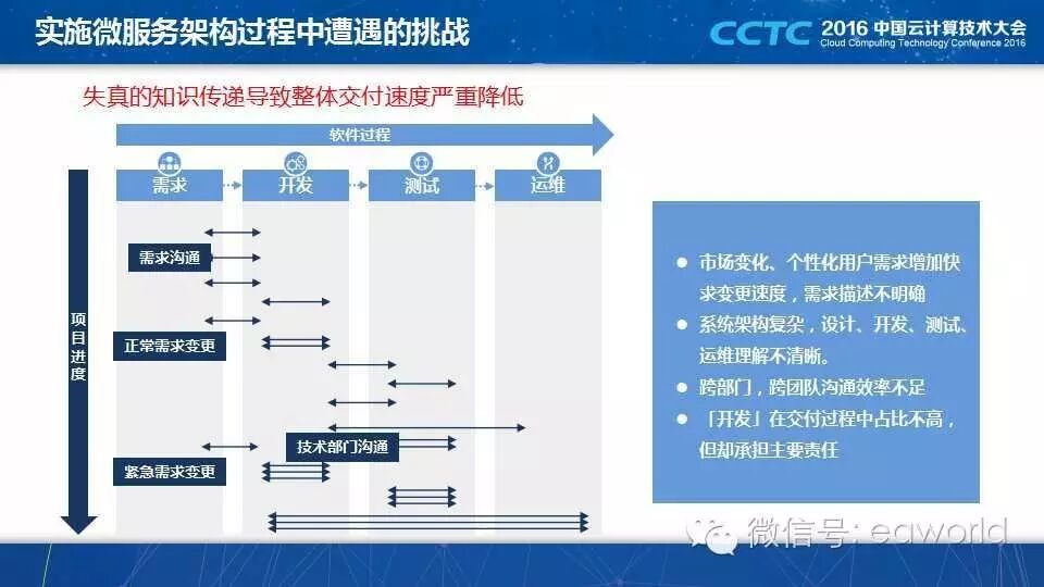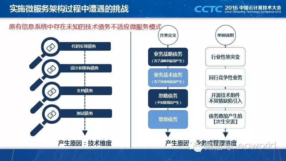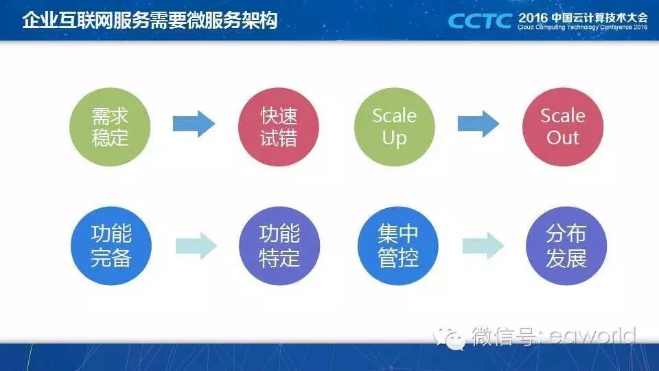 微服务是实现对外服务所必要的,原因有三:1、核心来自对外服务往往与互联网企业竞争,需要更快的速度;2、这些服务往往不是企业当前擅长的,要快速试错;3、业务的压力服务预计,需要架构的弹性。例如我们一个农村商业银行的客户,做了一个农产品买卖的电子商务平台,电子商务业务是他们不擅长的,而直接竞争对手就包括目前的互联网企业,迫使我们必须学习互联网企业的经验。