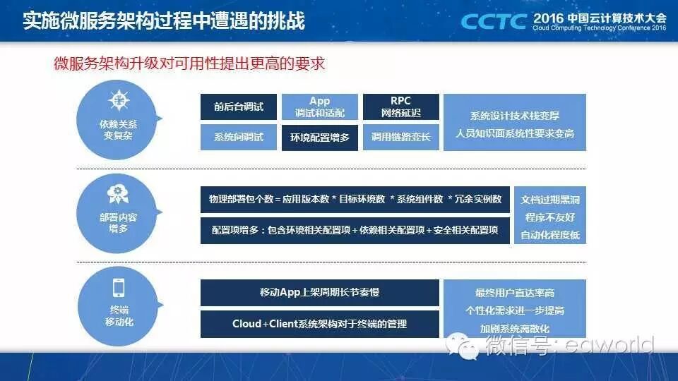 从这个角度看,实施云计算就是做精益运营,而微服务架构为精益运营提供了架构上的保证,因为微服务是小的、容易变化的、容易控制的。