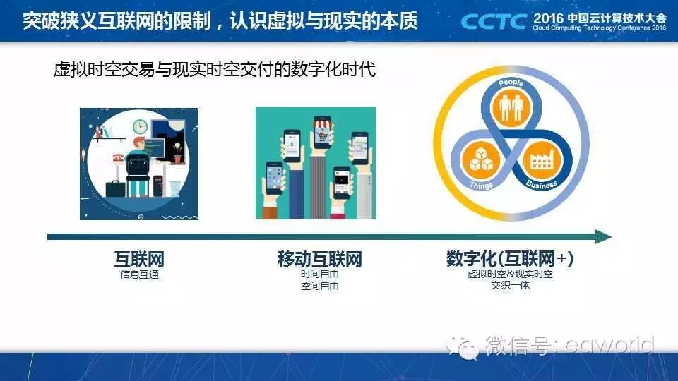 首先解释一下什么是数字化?数字化就是把人、事/物和商业联系起来,Garnter 提到未来的企业都是数字化的企业,IT将成为企业核心竞争力,甚至每个企业都是一个 IT 企业。类似的概念有金融科技(FinTech)、软件驱动企业、API经济,我觉得还是数字化描述得比较本质,大云物移/SMAC这些提法就技术化了。