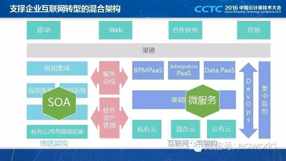 在数字化过程中,我们实施的案例往往采用混合的架构,新事新办法、老事老办法做过渡,而新事一般采用微服务架构。