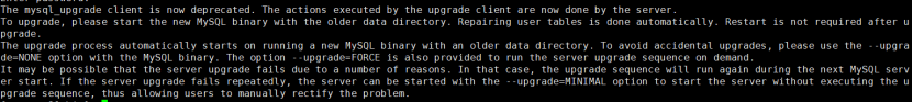 在MySQL 8中mysql_upgrade客户端现已弃用。升级客户端执行的操作现在由服务器完成。