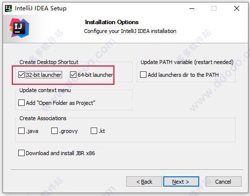 4、勾选创建intellij idea 2019.1桌面快捷方式,32位和64位建议都勾选,关联文件可以自行选择,小编这里没有选;