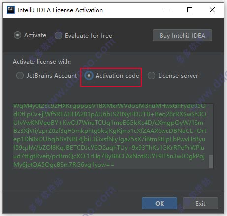 9、弹出注册界面,选择"activation code"输入注册码即可激活。