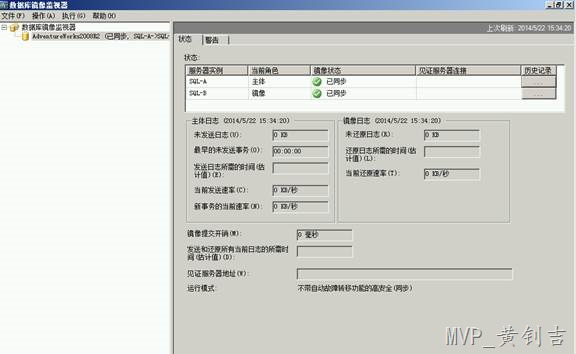 成功開始镜像过程之后,能够看到例如以下截图,证明搭建已经完成,能够使用红框部分的【故障转移】进行Failover,把主体数据库的活动会话转到镜像数据库上: