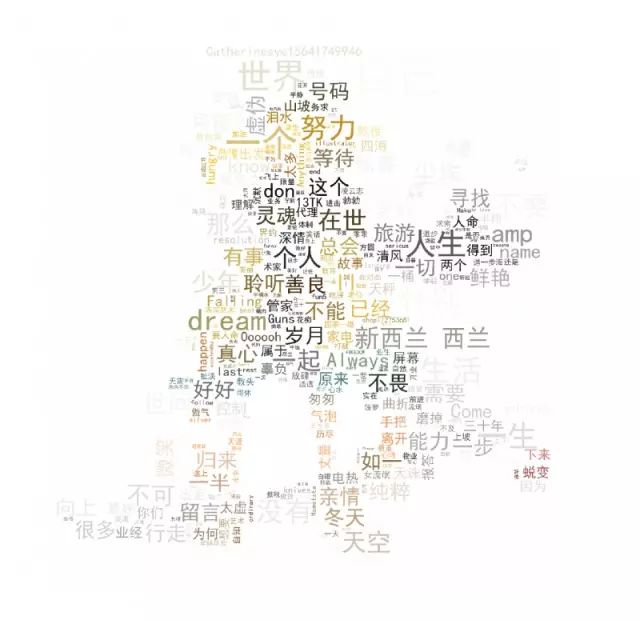 好玩的来了。之前已经爬下了每个好友的个性签名,刚好可以分析一下大伙儿个性签名时使用的高频词语是什么,顺便可以做个词云图(云图制作方法:逼格满满的文字云快速制作!)