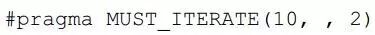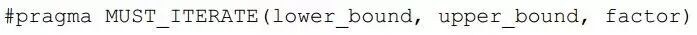- MUST_ITERATE:提供关于循环次数的一些确切信息:最小可能循环次数、最大可能循环次数以及循环次数为某个factor的倍数。它的使用语法如下: