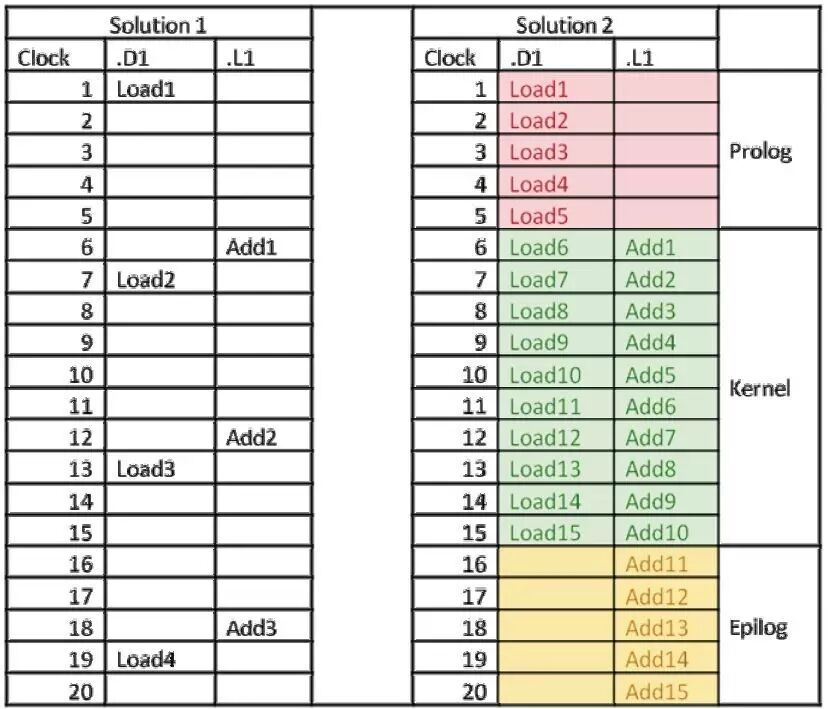 循环的运算性能主要取决于编译器能否编排出恰当的软件流水,编译器优化一个循环的过程大致分为三个步骤: