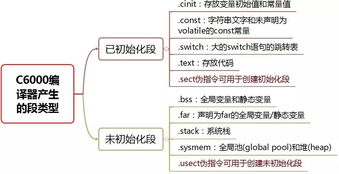 小存储器模式:.bss段限制在32kB内,CPU可用直接寻址方式访问.bss段中的所有对象而无需改变DP(B14)的值。