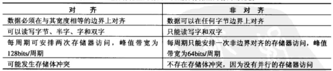 C64X支持非对齐的字和双字访问,其对边界对齐和非边界对齐数据访问的比较如下表所示: