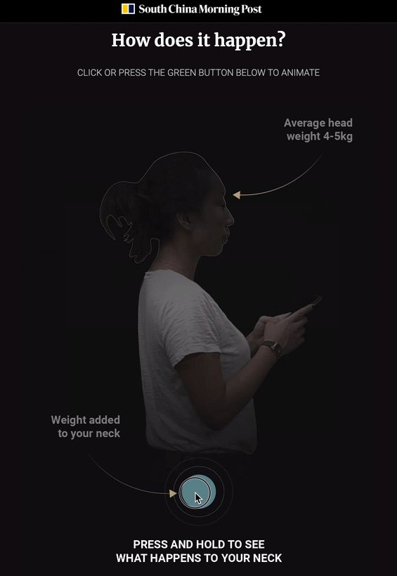 通过交互,我们可以更清晰地看到不同姿势给我们的颈部带来的压力。