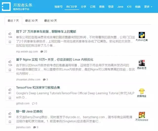 跟开发者头条有点类似,并且有Chrome插件,很方便。