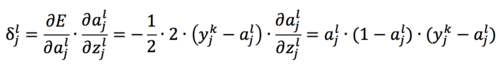从式子中我们可以看到,我们只需要知道下一层的权重和神经元输出层的值就可以计算出上一层的 δ 值,我们只要通过不断的利用上面这个式子就可以更新隐藏层的全部权重和偏置了。
