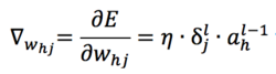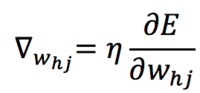 其中 η 为学习率,取值通常为 0.1 ~ 0.3,可以理解为每次梯度所迈的步伐。注意到 w_hj 的值先影响到第 j 个输出层神经元的输入值a,再影响到输出值y,根据链式求导法则有: