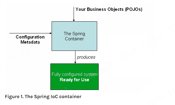 Spring容器通过我们提交的pojo类以及配置元数据产生一个充分配置的可以使用的系统