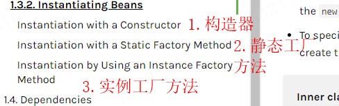 - Spring官网上指明了,在Spring中实例化一个对象有三种方式:
