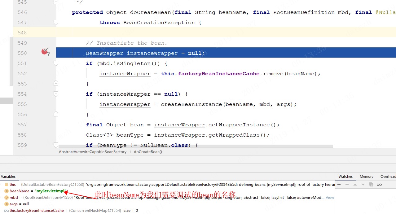 // 这里将测试对象换为config即可,同时记得将条件断点更改为beanName.equlas("config")