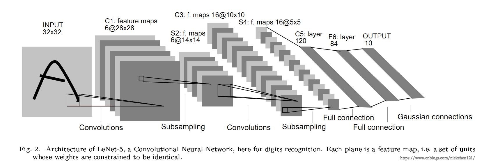 接下来我们将以卷积神经网络 LeNet 网络为例,看看如何用 nn.Module 实现,其中 LeNet 网络架构如下图所示: