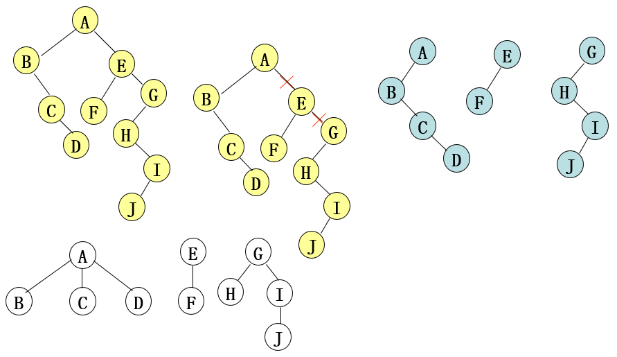抹线:将二叉树中根结点与其右孩子连线,及沿右分支搜索到的所有右孩子间连线全部抹掉,使之变成孤立的二叉树