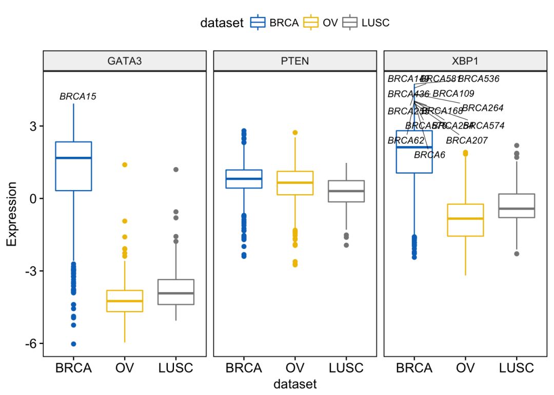 expressionsTCGA(BRCA.rnaseq, OV.rnaseq, HNSC.rnaseq) %>%