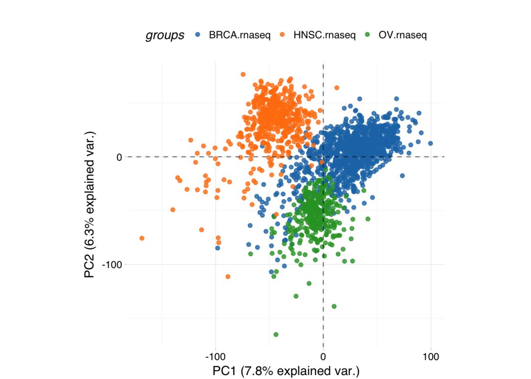 pcaTCGA(BRCA.OV.HNSC.rnaseq.cancer, "cohort") -> pca_plot