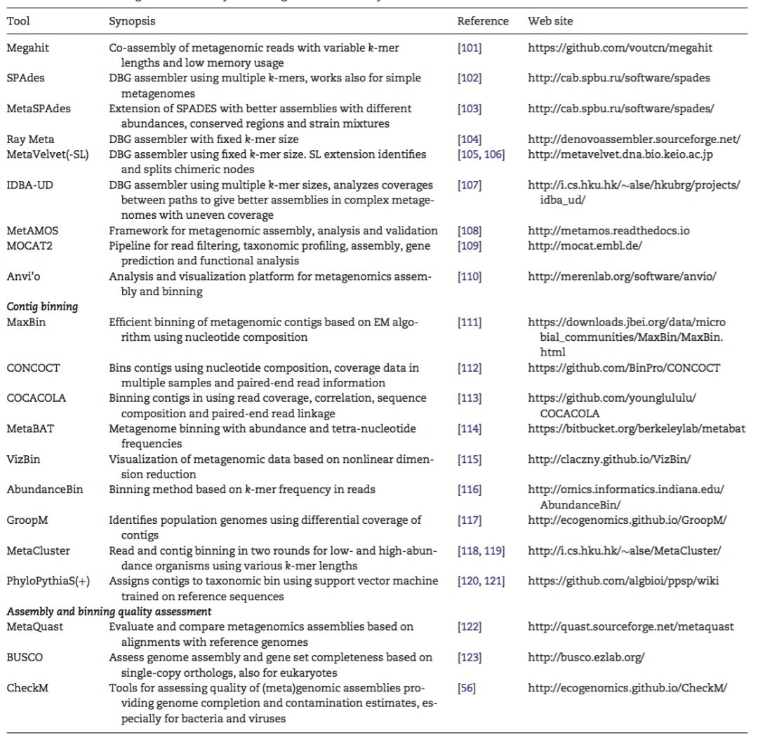组装和binning工具汇总: