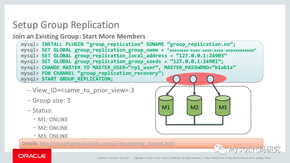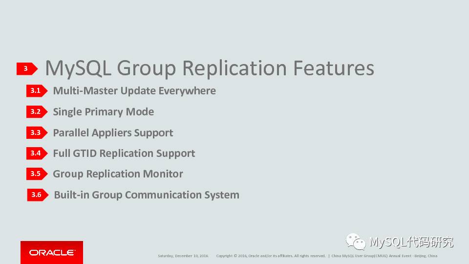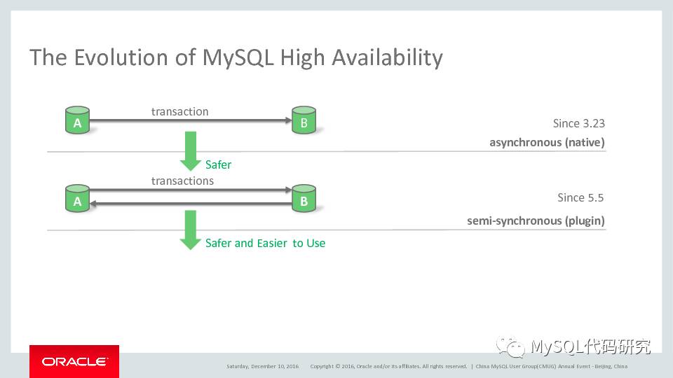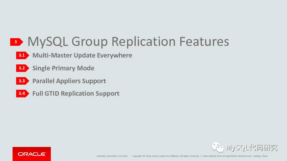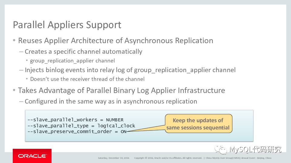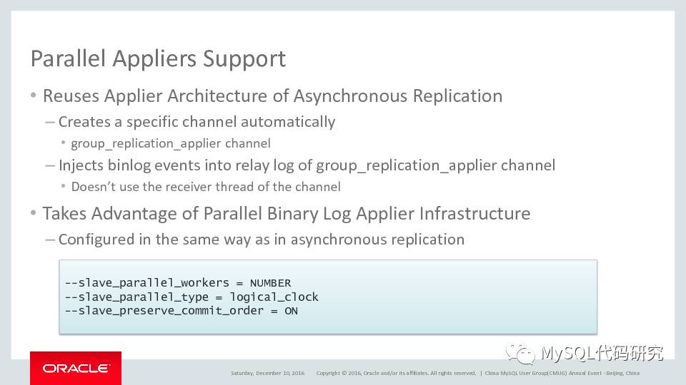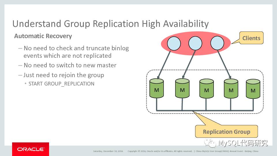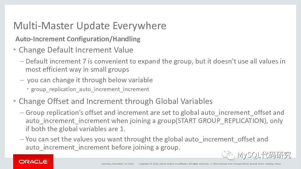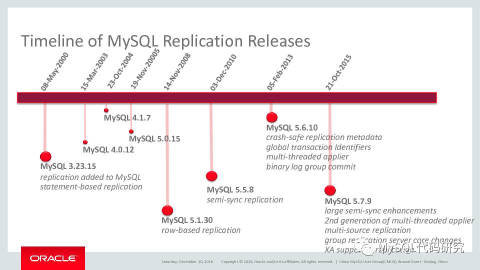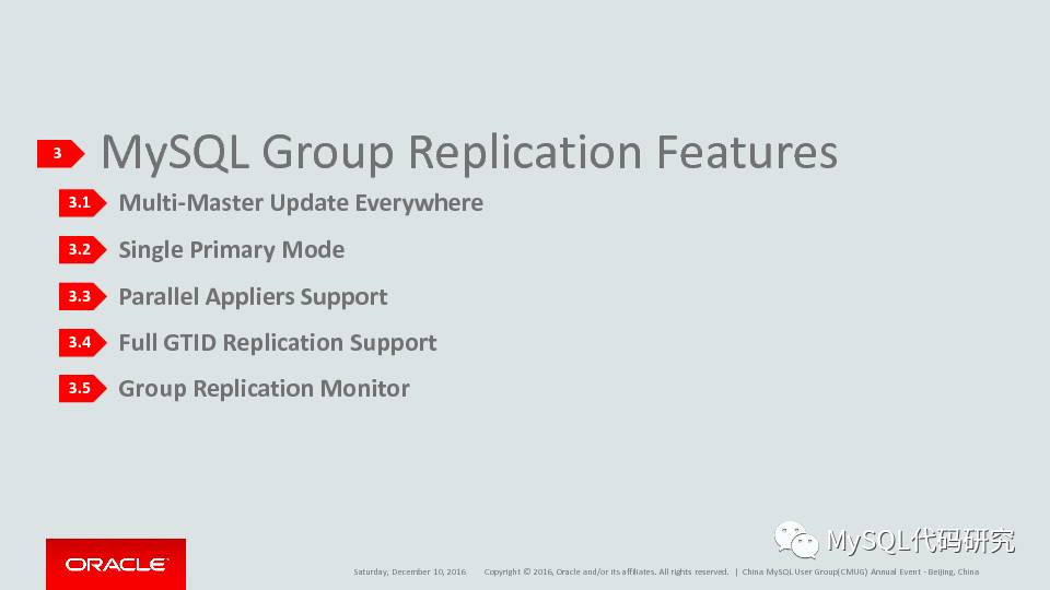 ACMUG年会上很多人问:有没有对比过Group Replication和异步复制的性能。MySQL Replication Team已经做了详细的性能对比,相关文章基本就绪,不久就会发布到官方博客上。另外还有一篇对比Group Replication和Galera功能的文章也会一同发布。官方博客地址如下: