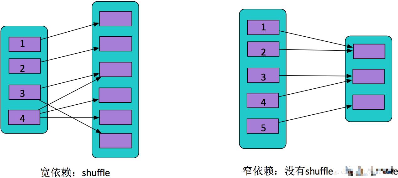 那图中右边为什么是窄依赖?父RDD的每个分区的数据直接到子RDD的对应一个分区(一分区对一分区),例如1号到5号分区的数据都只进入到子RDD的一个分区,这个过程没有shuffle。Spark中Stage的划分就是通过shuffle来划分。