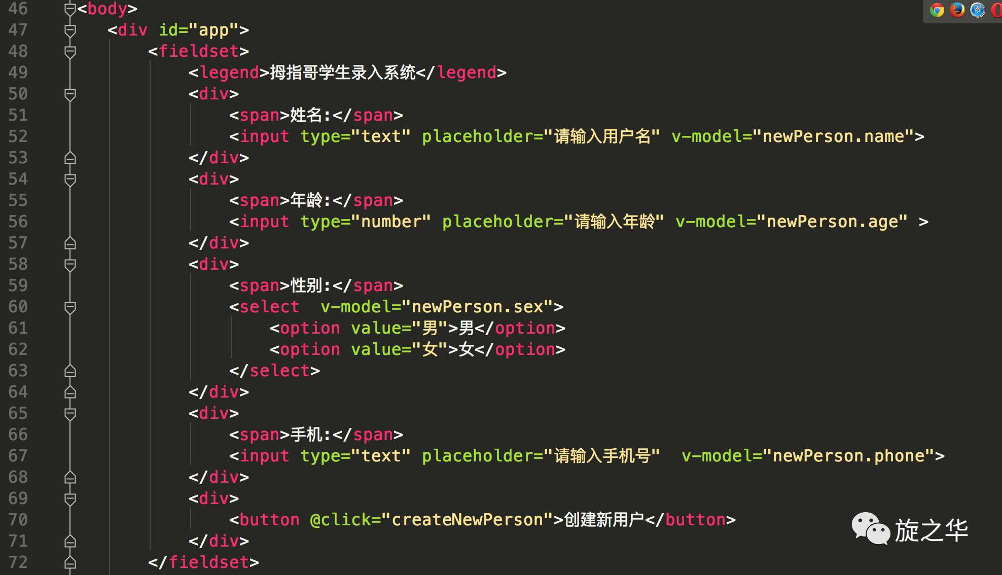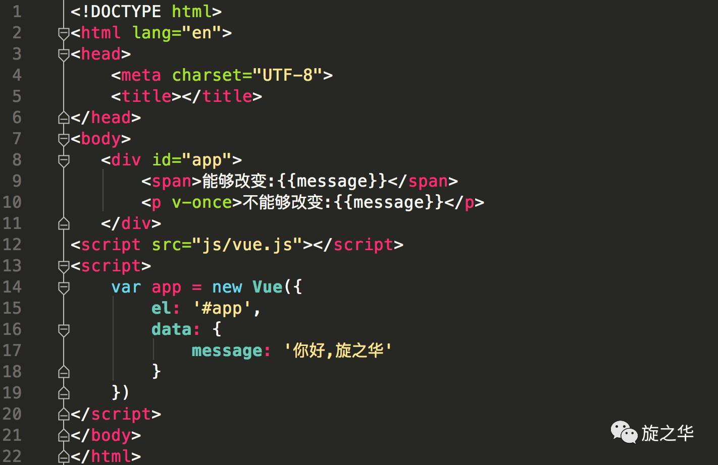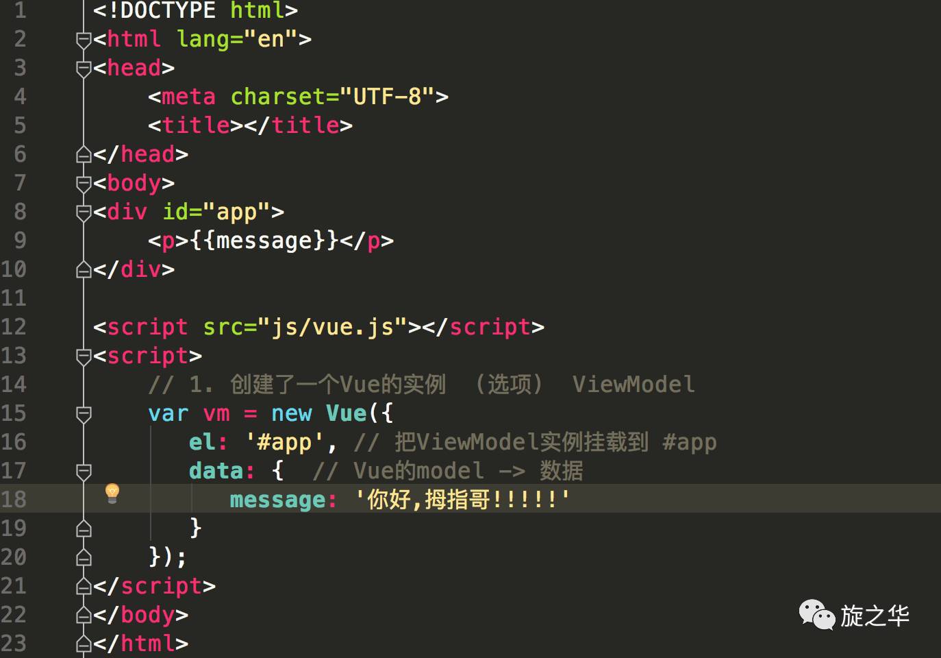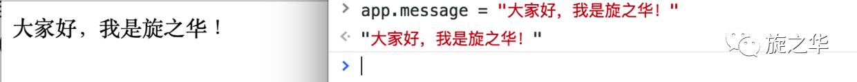我们打开浏览器的控制台输入 app.message = '大家好,我是旋之华!',你会发现对应的HTML已经发生了改变,如下图所示: