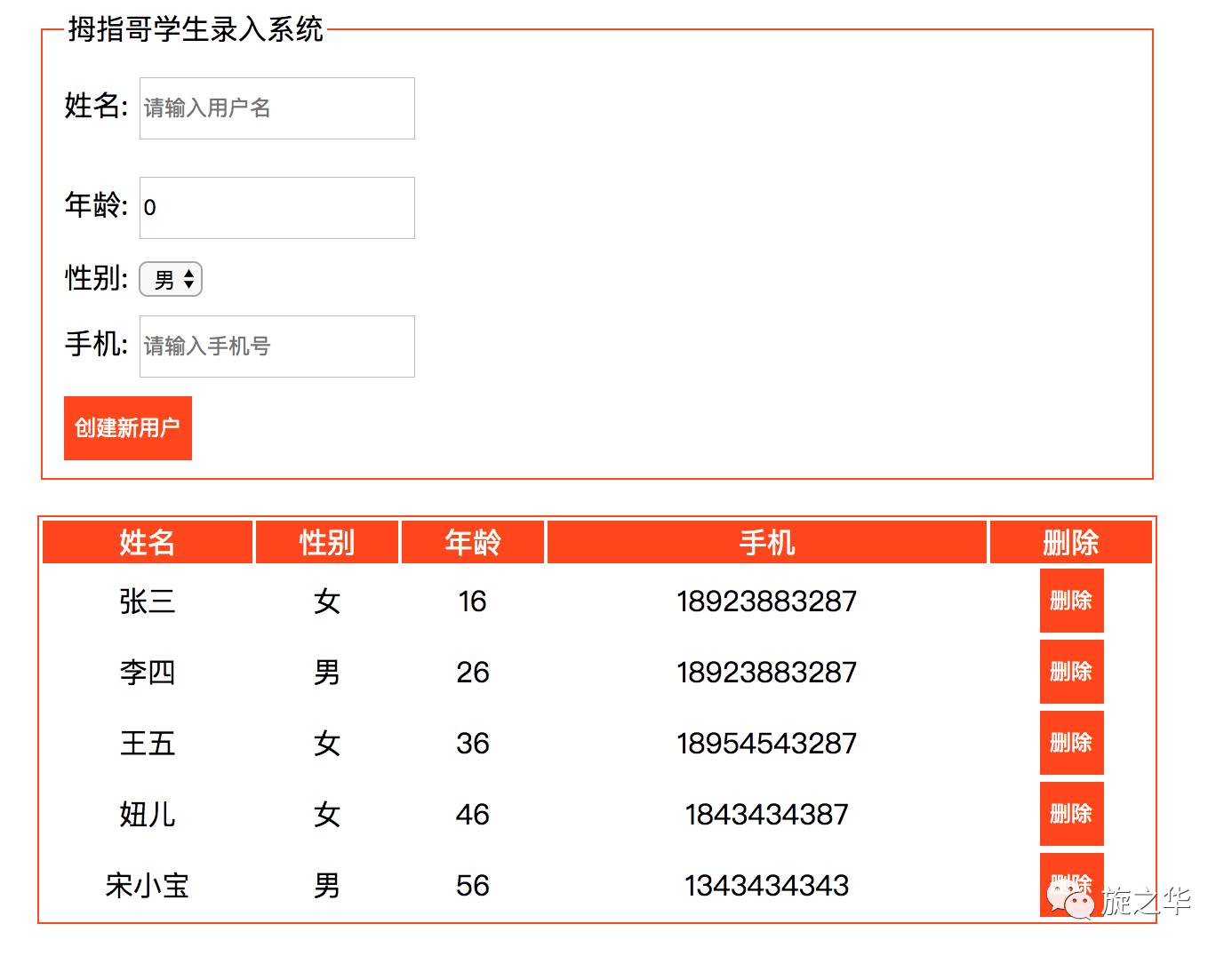 结合上述指令,完成小码哥学生信息录入。主要功能有动态添加学生信息,动态删除学生信息,空值校验。