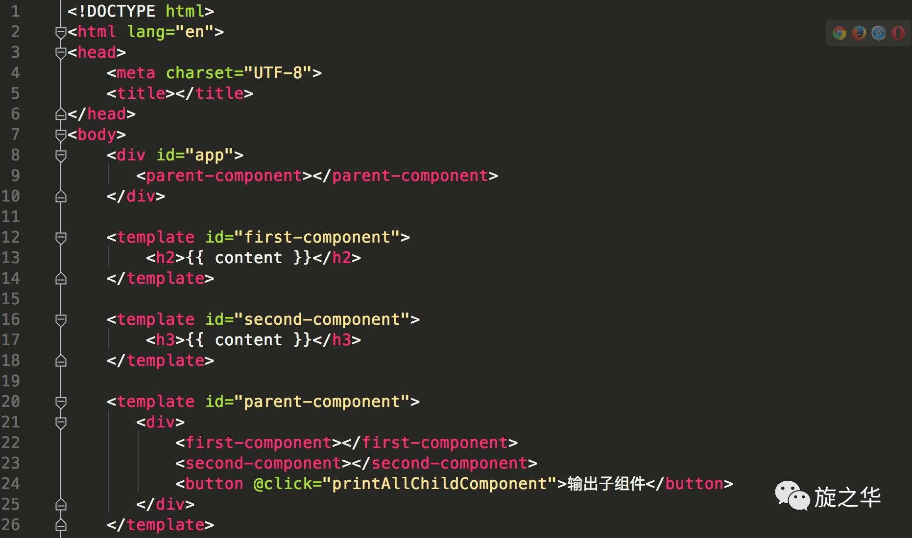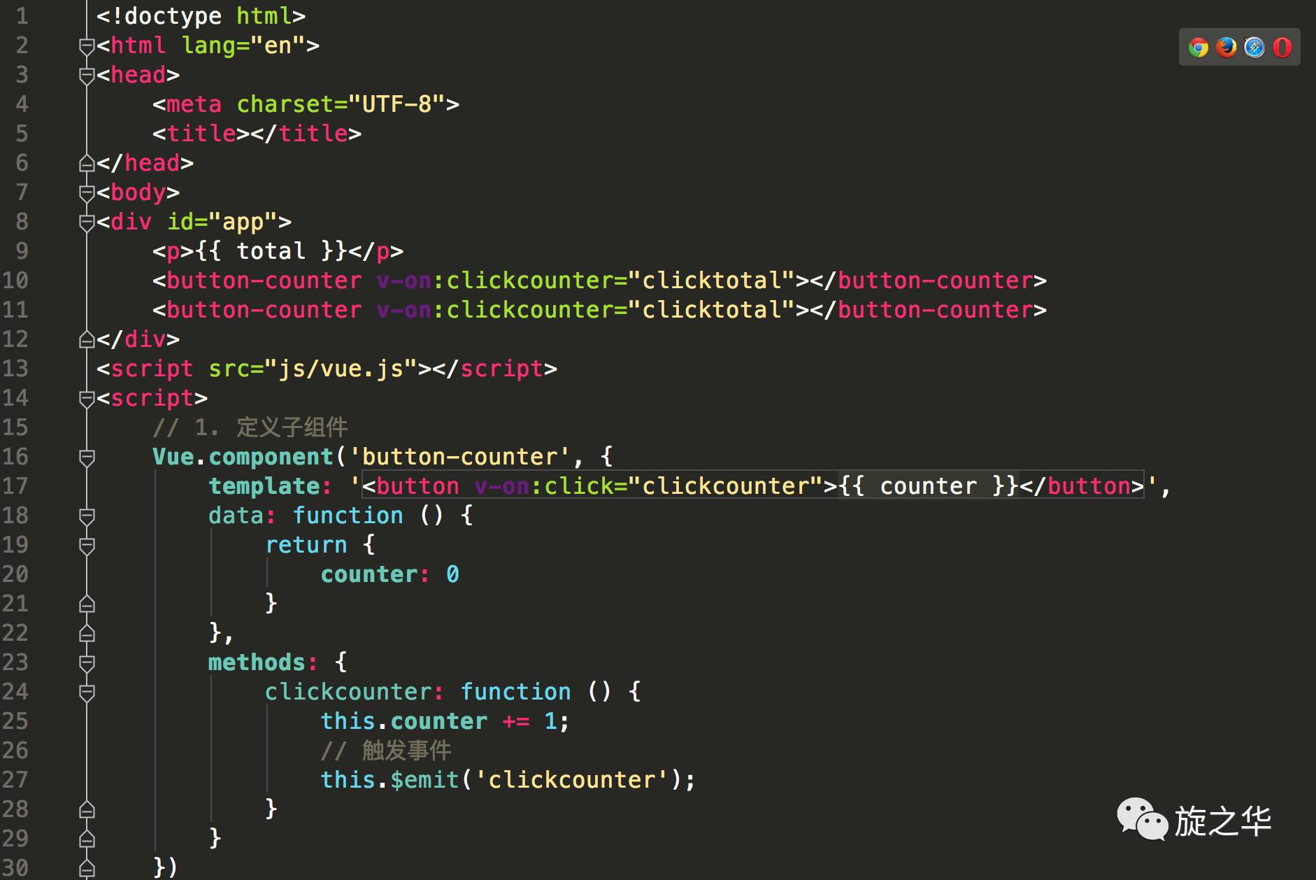 另外,父组件可以在使用子组件的地方直接用 v-on 来监听子组件触发的事件。