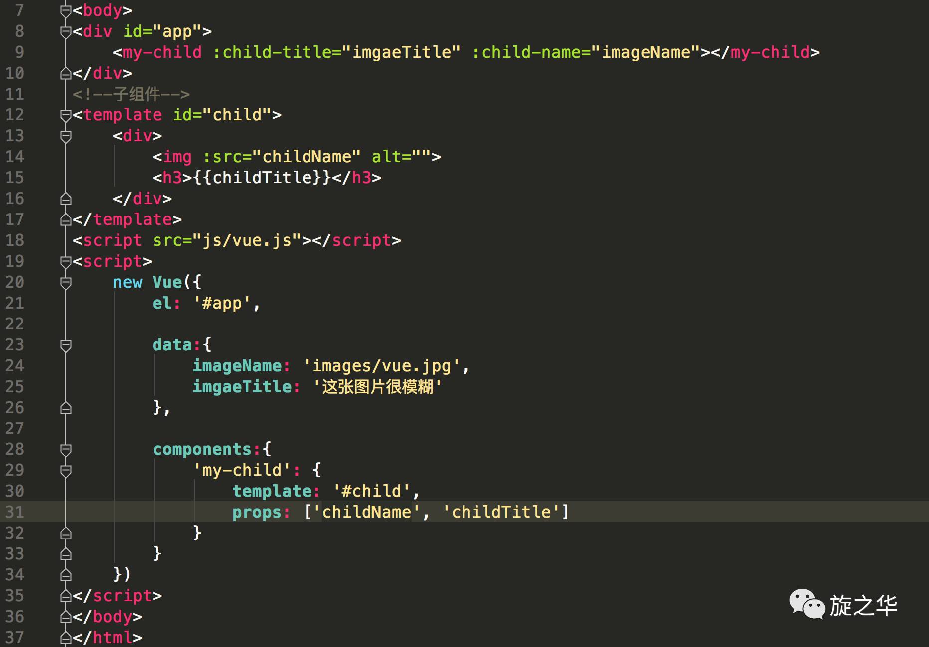 上面话的意思在于:在子组件中定义的数据,只能用在子组件的模板;在父组件中定义的数据,只能用在父组件的模板。如果父组件的数据要在子组件中使用,则需要子组件定义props。