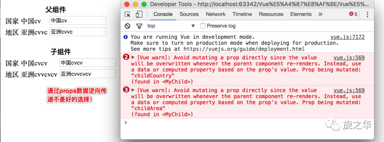 当父组件的属性变化时,将传导给子组件,但是反过来不会。这是为了防止子组件无意修改了父组件的状态。