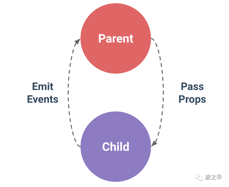 在 Vue.js 中,父子组件的关系可以总结为 props down, events up 。父组件通过 props 向下传递数据给子组件,子组件通过 events 给父组件发送消息。如下图所示: