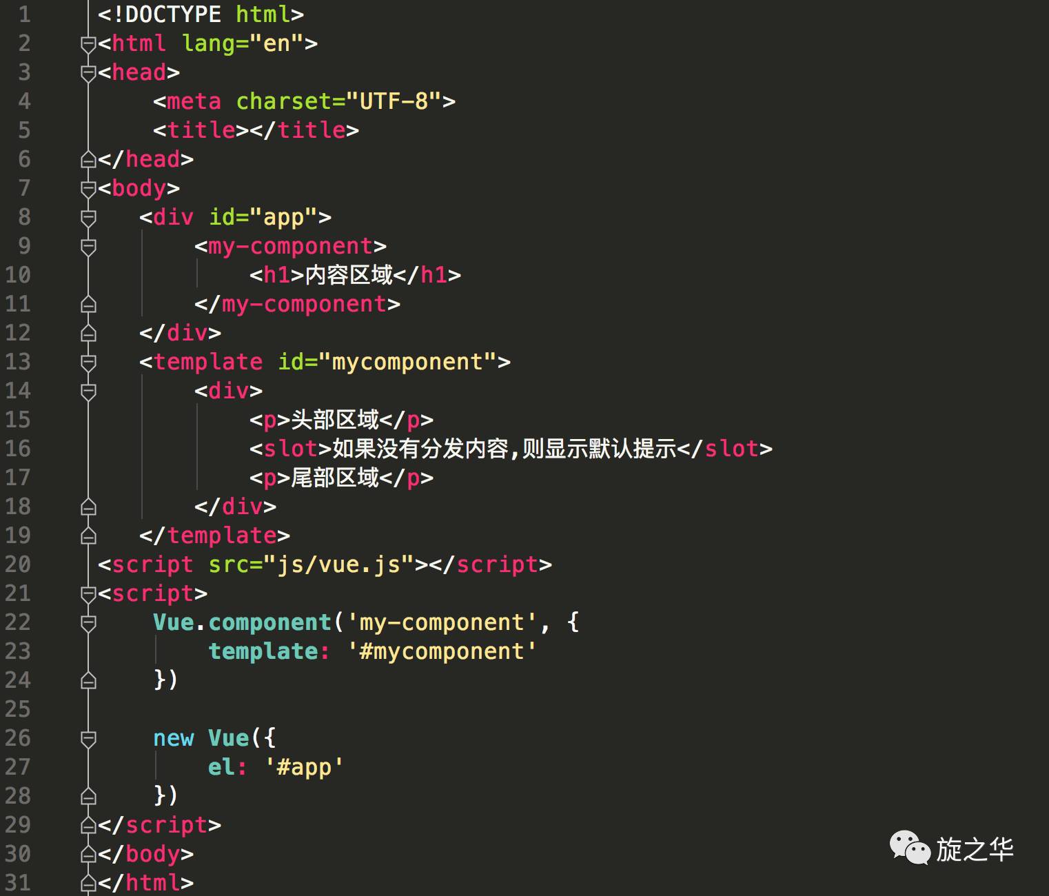 结合上述案例,我们再进一步来了解:比如我们定制了一个button组件,在根组件里注册为vButton,从而复用。那么各个button上的文字肯定是不同的,但是这些文字大部分情况下也是不需要动态更新的,那么就不必用props之类的方法从根组件向子组件传递文字,直接用slot即可。