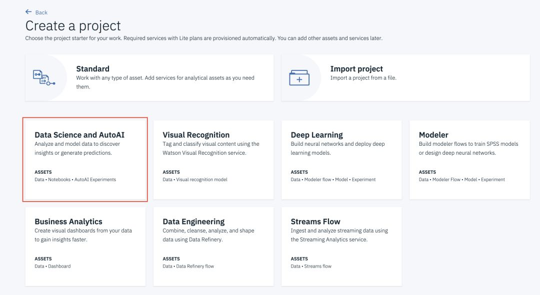 注意: 通过在Watson Studio中创建一个项目,一个免费的