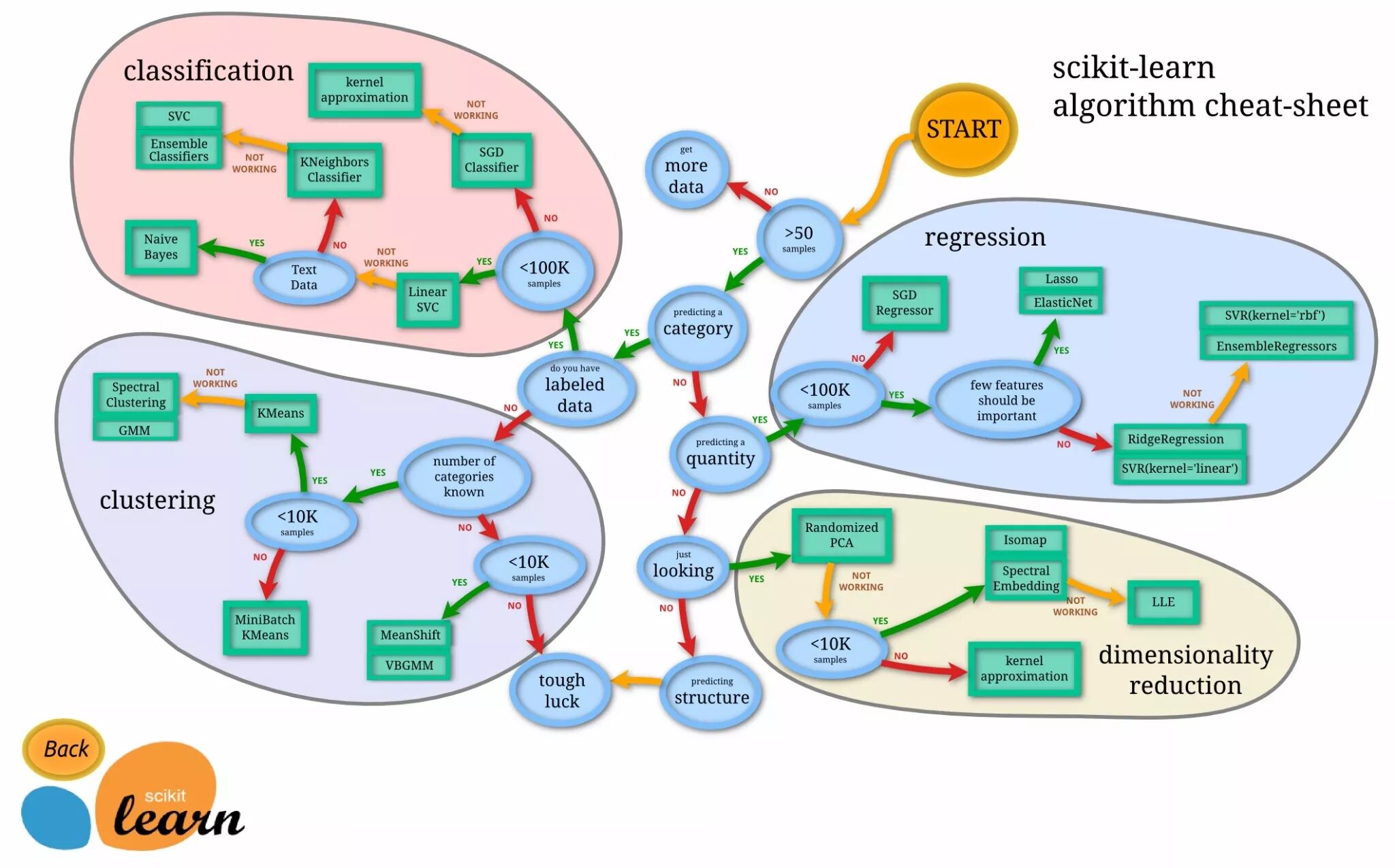 另外,Scikit-learn 也提供了一幅清晰的路线图给大家选择: