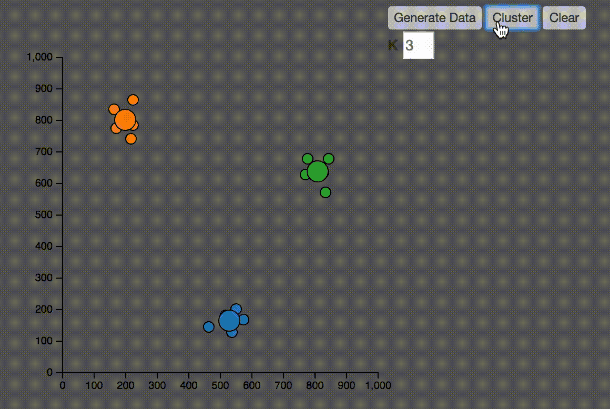 2、由于中心点的初始位置是随机的,有可能并不能正确分类,大家可以在我的Codepen中尝试不同的数据