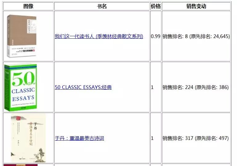 #有额外需要的可以自己改编,譬如分类啊,好评率啊等等。对我来说,知道价格、书名就够了
